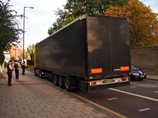 As you can see in the above picture, this is not a good state of affairs. Luckily no one was injured, but the car on the left did sustain damage, as the road is simply not large enough for these vehicles to turn at the end of the road. You really have to see this close up to appreciate how large these vehicles actually are!