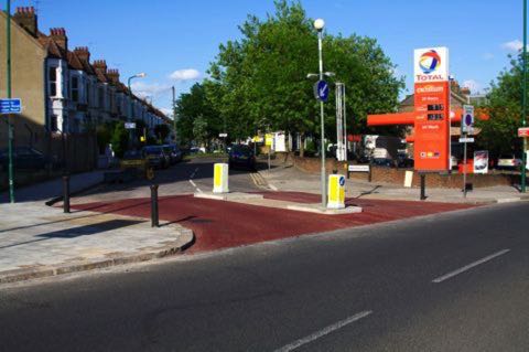The entrance to the road has been reshaped and narrowed to prevent use by heavy unsuitable vehicles entering the triangle, and to slow down vehicles as they leave harrow road.